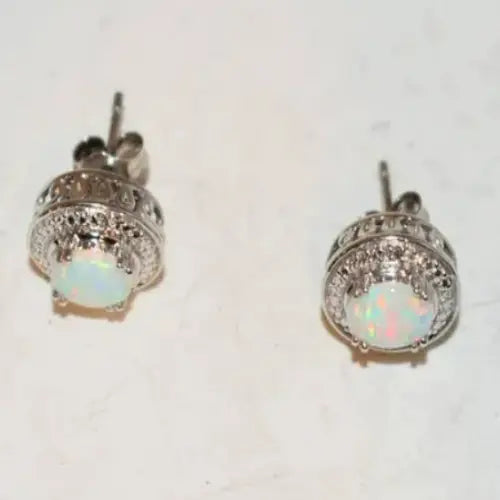 These captivating opal and diamond accent halo earrings add panache to any look.