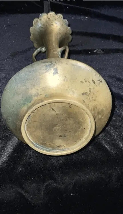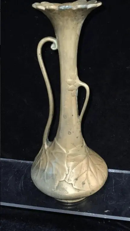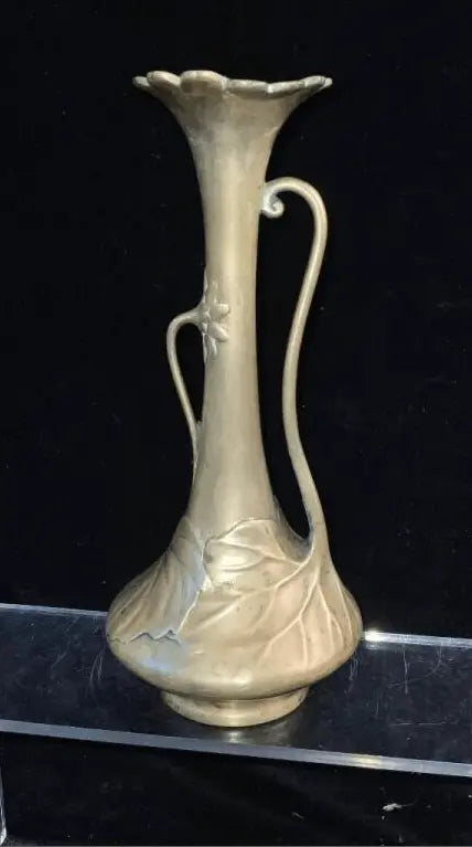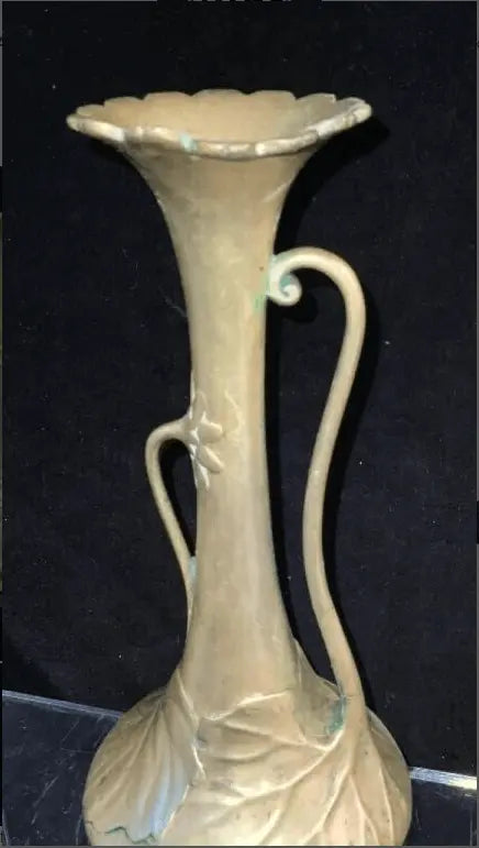 Encounter the exquisite beauty of Japanese art and culture with this antique Yoshimasa Meiji Period Bronze Lotus Vase. Featuring elegantly crafted handles and intricate lotus leaf designs, this 11-inch tall vase adds a touch of timeless elegance to any collection. Made with bronze, its unique golden color and weathered patina make it a true work of art. This vase is a must-have for antique lovers and Asian art enthusiasts alike. Originating from Japan, its authenticity and quality are undeniable. Add a touch of sophistication to your home or office with this stunning bronze vase that captures the essence of Japanese craftsmanship.