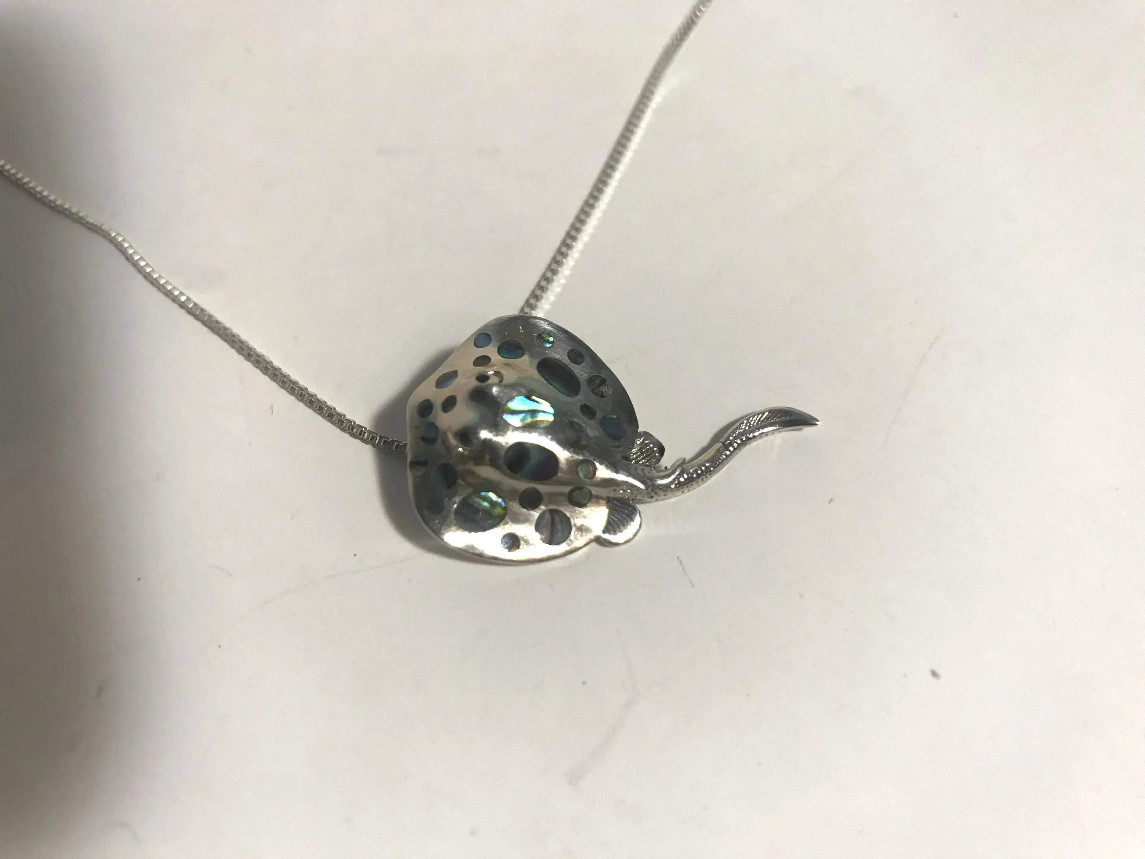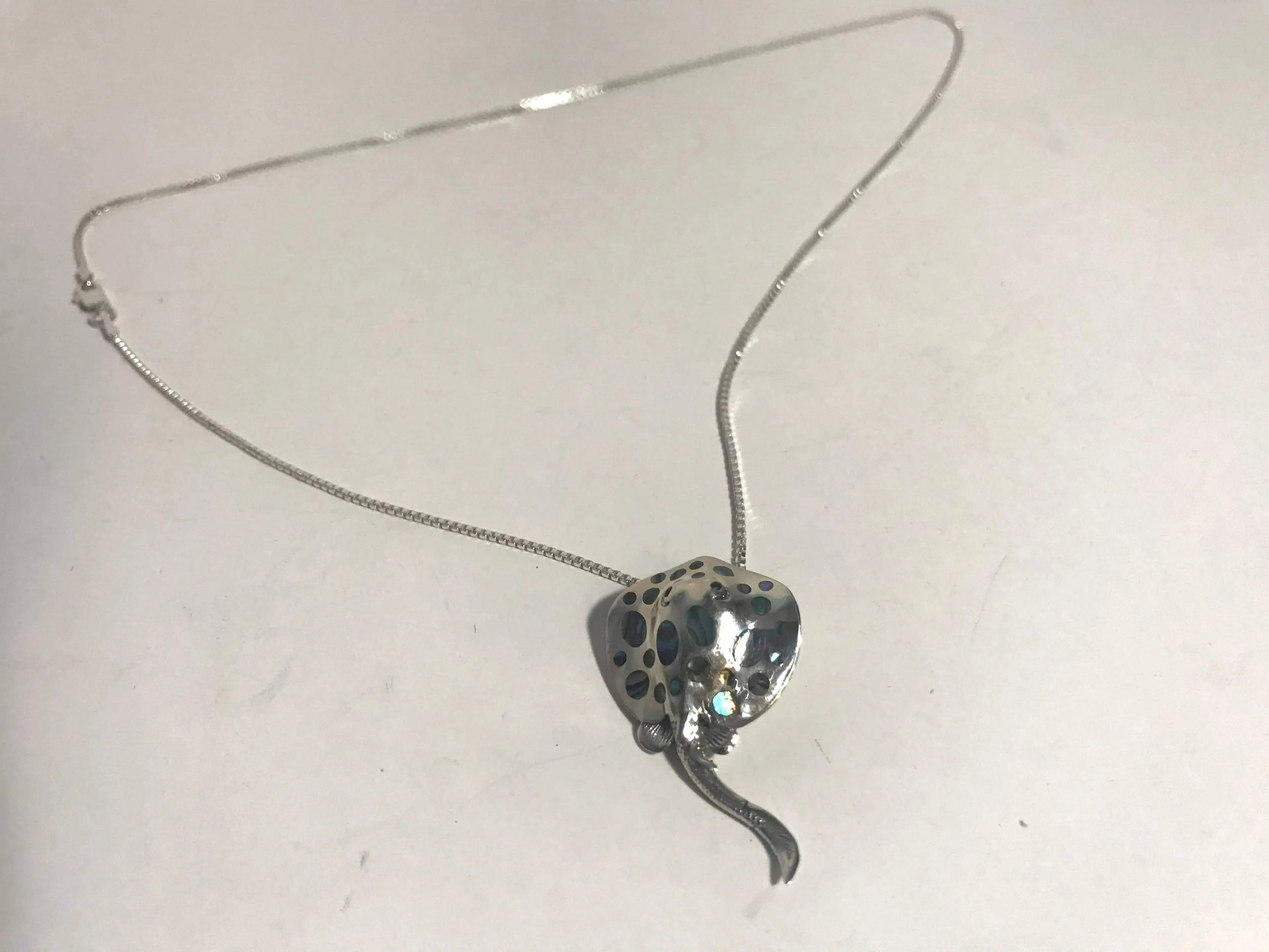 Halskette mit Mantarochen-Anhänger aus Sterlingsilber mit blauem Opal