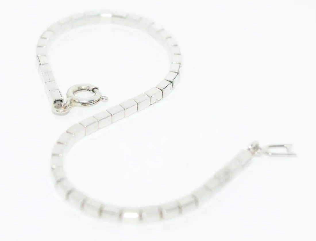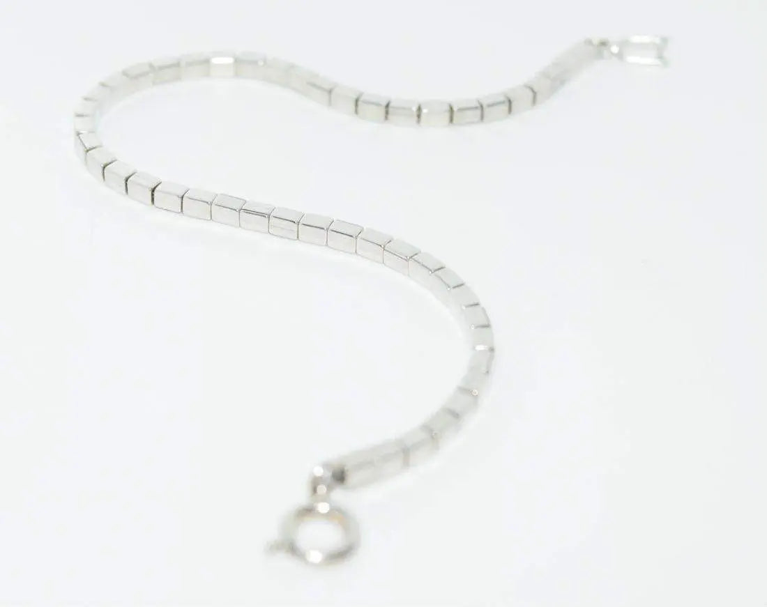 Der  Die quadratischen Schiebeperlen aus Sterlingsilber, die an einer Weizenkette befestigt sind, sind ein seltenes Stück und sorgen für eine atemberaubende Präsentation. Jeder mag es, bemerkt zu werden. Dieses Armband wird mit Sicherheit auffallen.