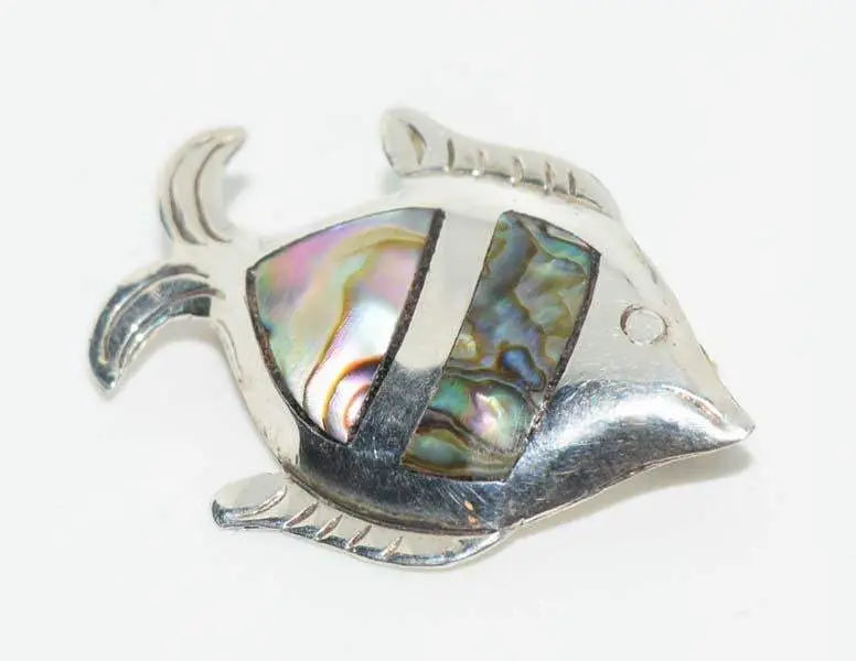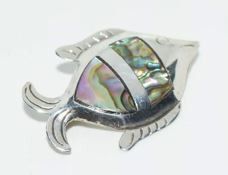 Taxco Mexiko Sterling Silber Abalone Fisch Brosche Anstecknadel