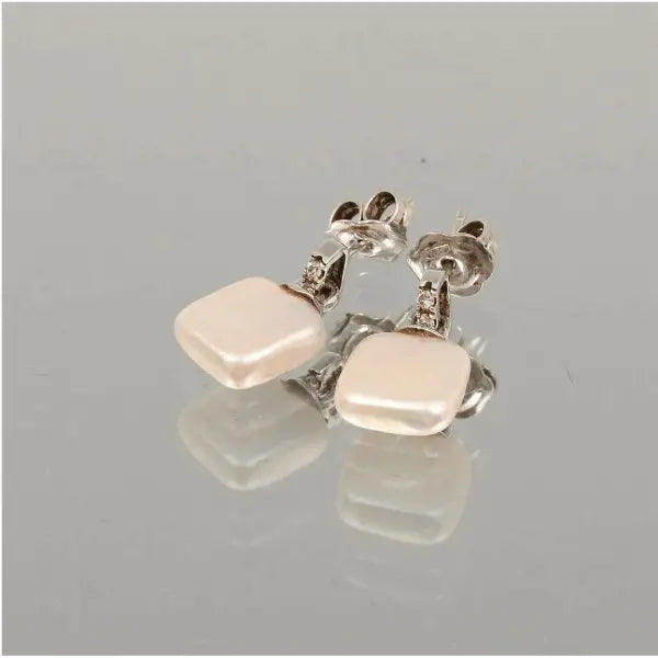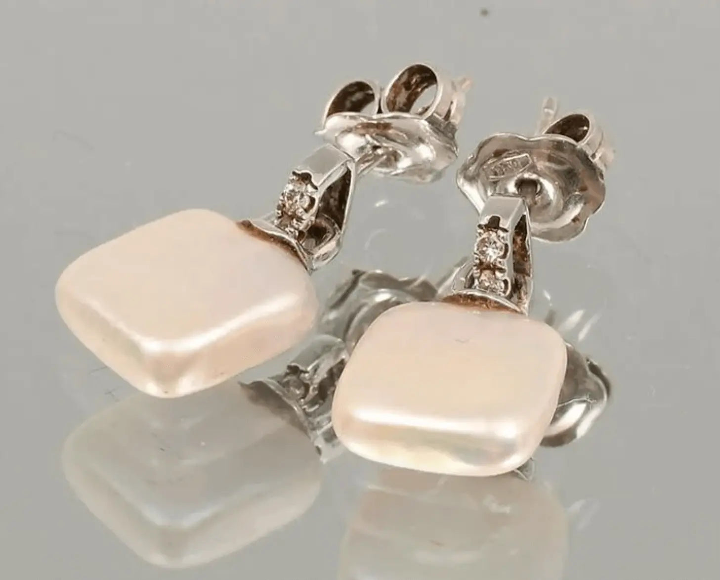18K WHITE GOLD PEARL & DIAMOND EARRINGS: