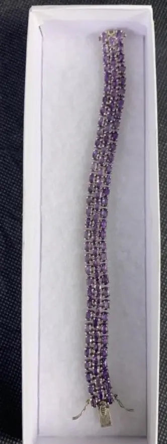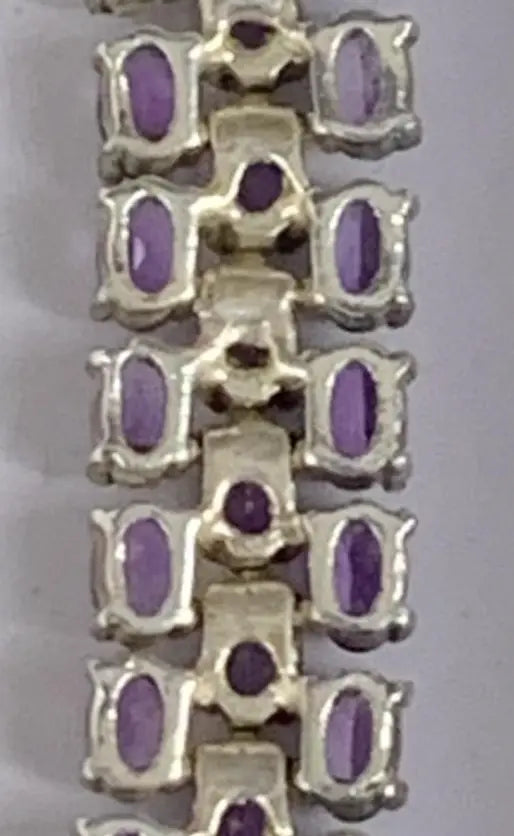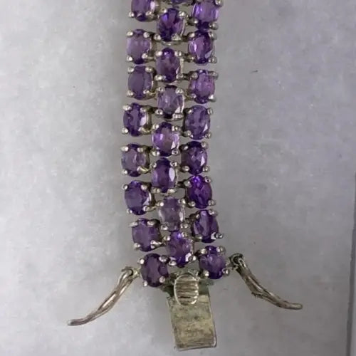3 Row 100 Amethysts Sterling Silver Bracelet