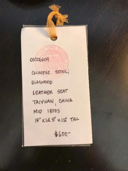 Antique Chinese Elm Wood & Leather Stools Est. Mid 17th Century