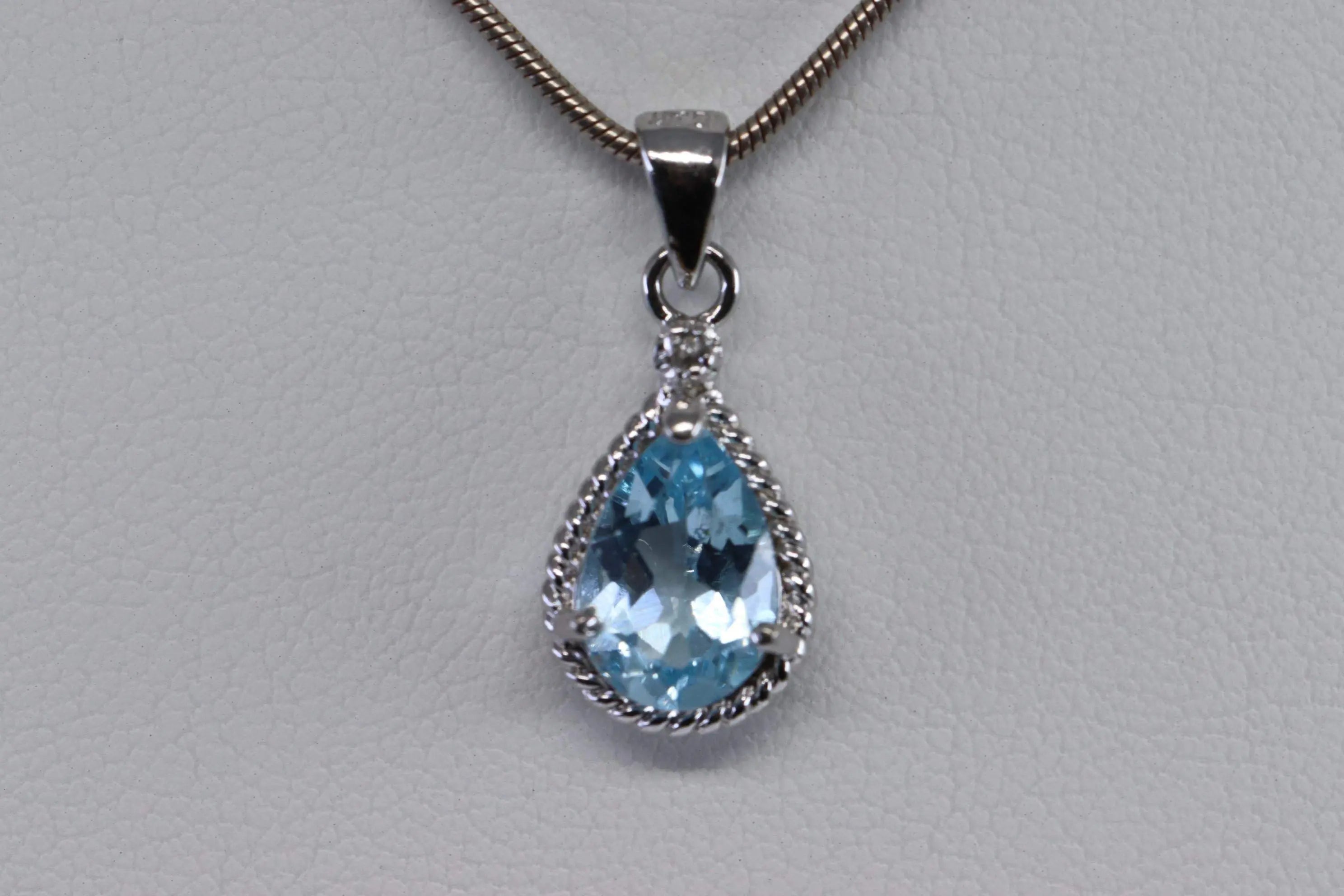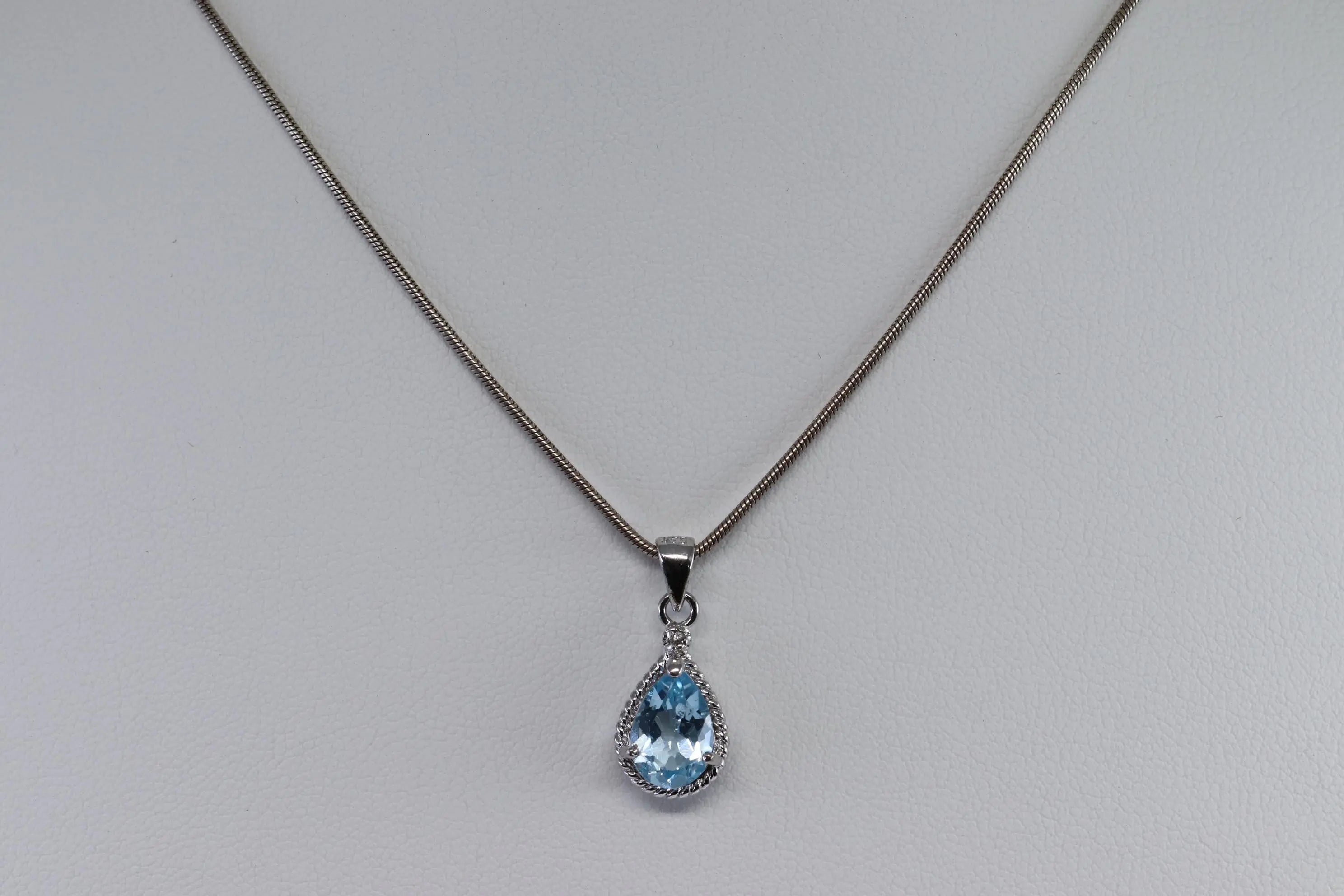 Large Blue Topaz Teardrop Sterling Silver Necklace
