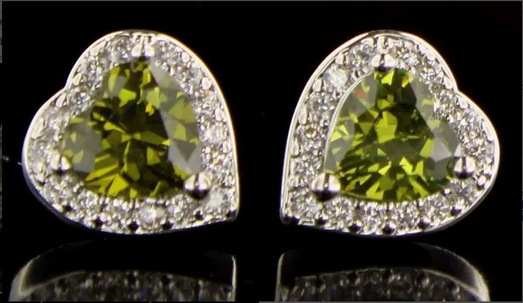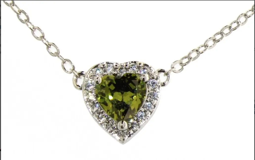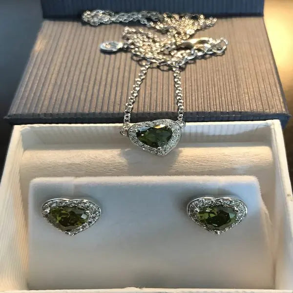 Brilliant Peridot & White Topaz Heart Necklace & Earrings Set