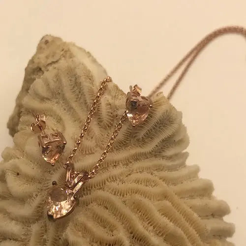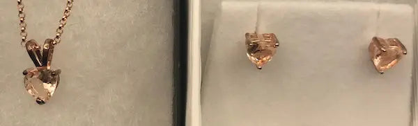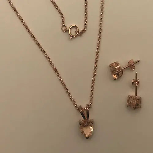 Rose Gold Morganite Heart Solitaire 2-Piece Necklace and Stud Earrings Set