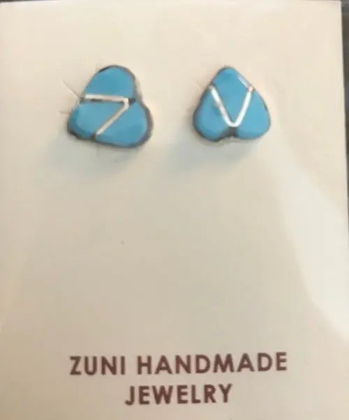 Indulge in the luxurious artistry of these Zuni Rose Bowami inlaid earrings. Handmade with precision and care, each delicate heart shape boasts three Sleeping Beauty turquoise stones, exuding sophistication and exclusivity. Measuring 1/2" by 3/4", these earrings are crafted from exquisite sterling silver, reflecting the glamour of the 1970's era. Treat yourself to the weightless grace of these 1 gram earrings, a true testament to the beauty of handmade jewelry.