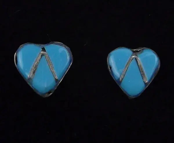 Turquoise Heart Vintage ZUNI Sterling Silver Earrings