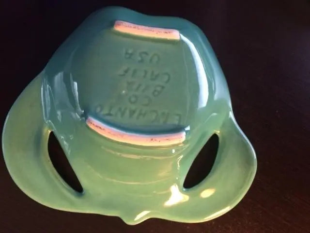 Enchanto used a number of different glazes, but often in blue, green or pink. They made this set of pear-shaped bowls.