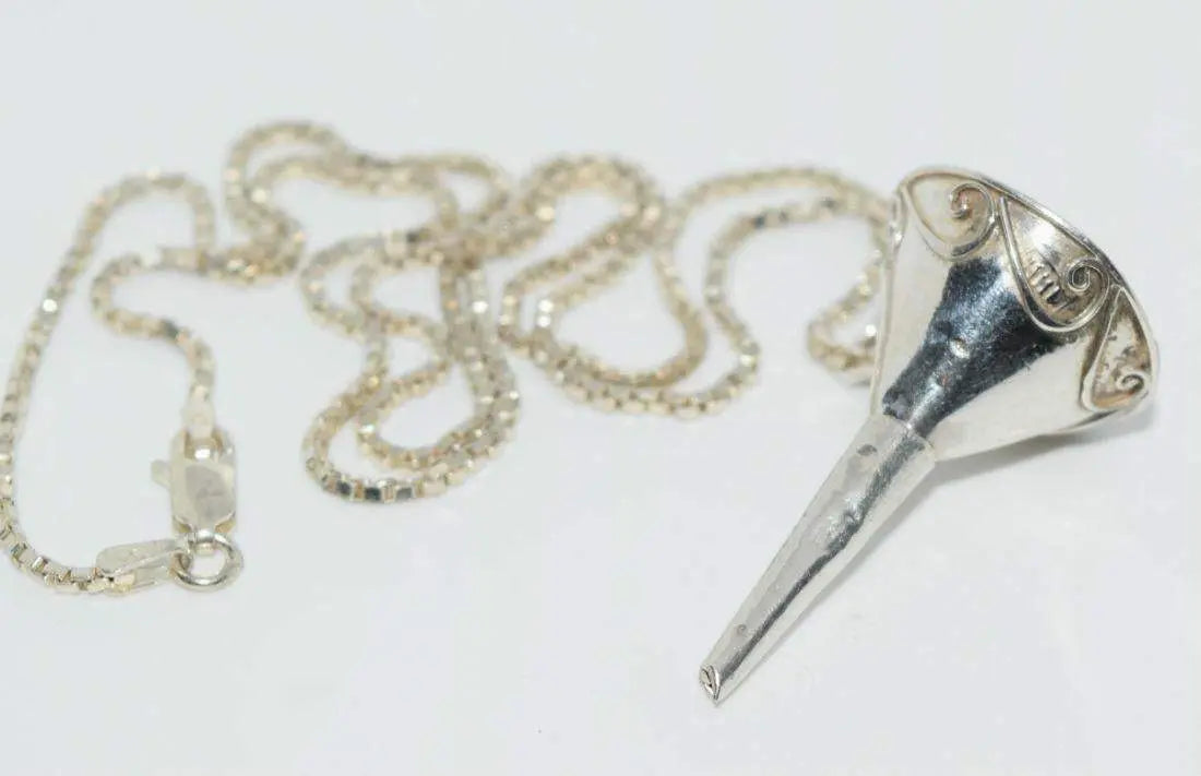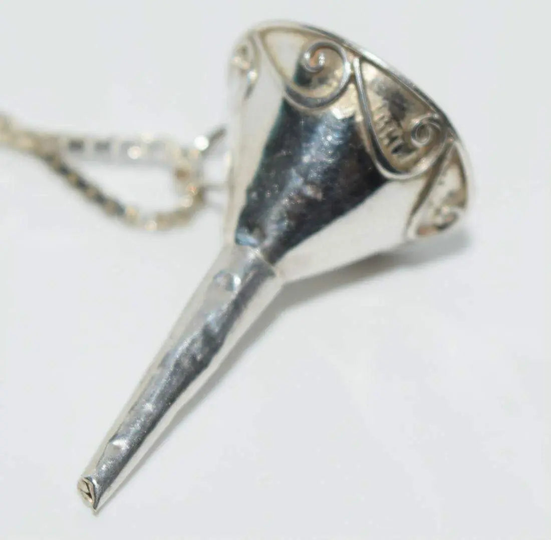 Vintage Handmade Mexico Sheet Silver Perfume Funnel Necklace