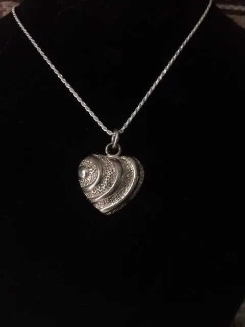 Vintage Sterling Silver Heart Pendant Necklace 20"